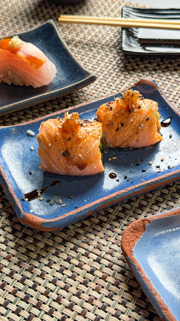 Maçaricado e finalizado com pasta à base de missô , cebolinha e gergelim. 02...